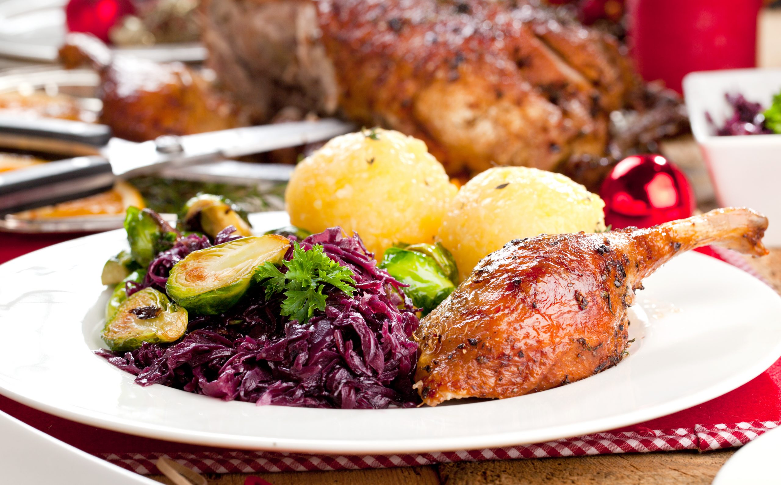 Deftiger Hirschbraten mit hausgemachtem Apfelrotkohl und Kartoffelklößen |